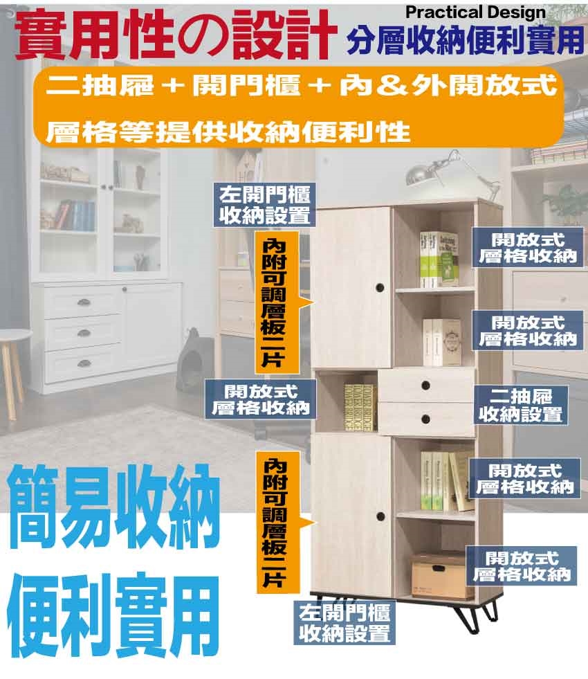 - 產品名稱:【綠家居】拉德2.7尺二門二抽高書櫃/收納櫃(左向開門)