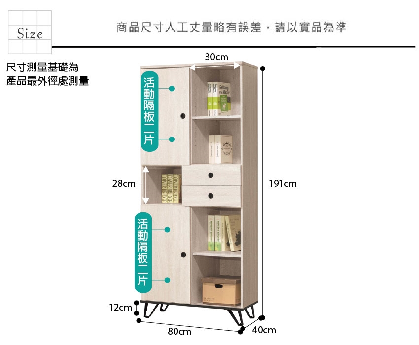 - 尺寸:(寬)80x(深)40x(高)191/公分