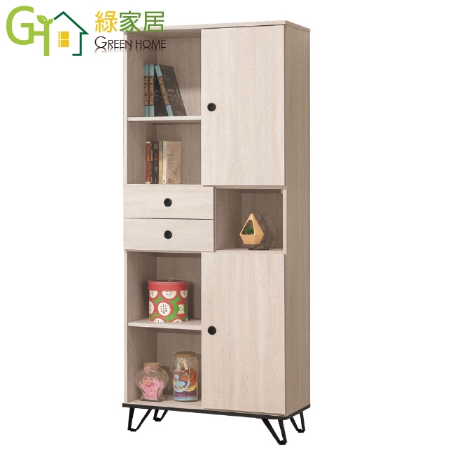 【綠家居】拉德2.7尺二抽雙開門高書櫃/收納櫃(左向開門)