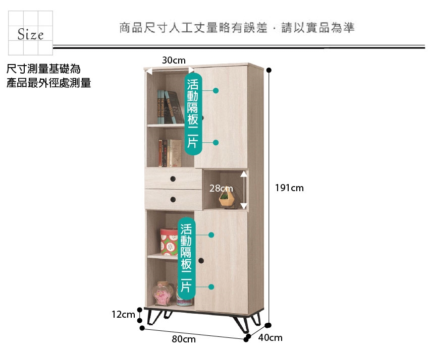 - 尺寸:(寬)80x(深)40x(高)191/公分
