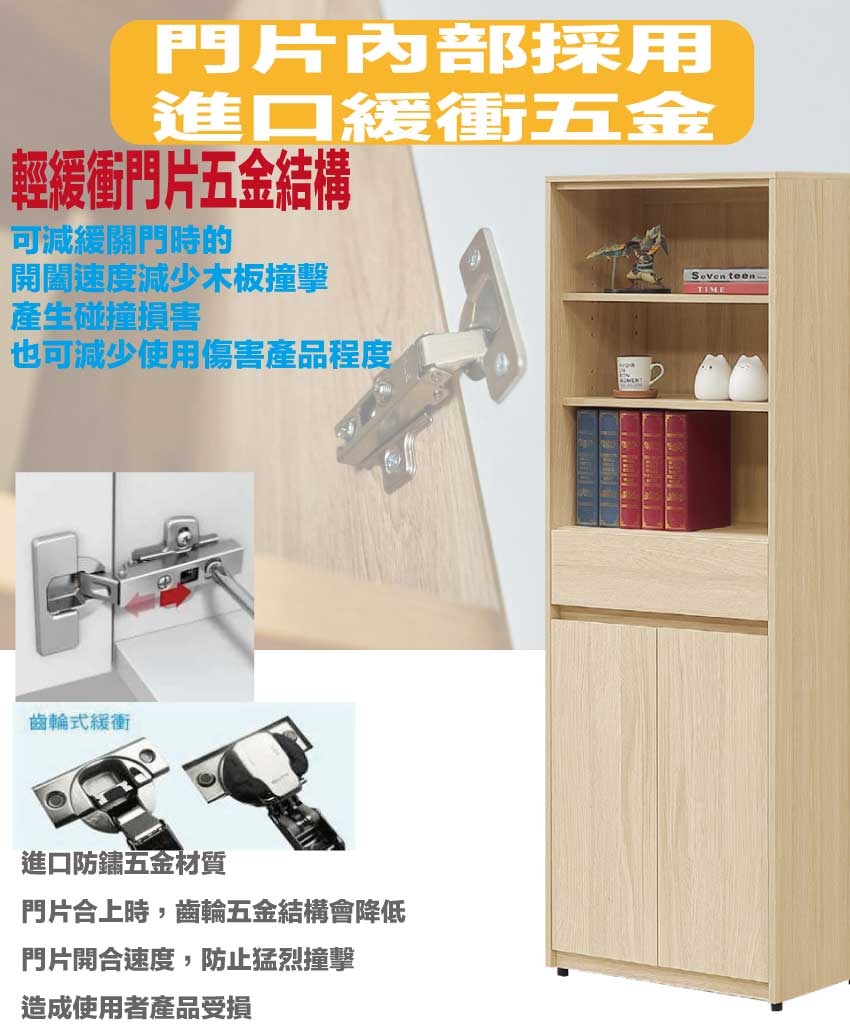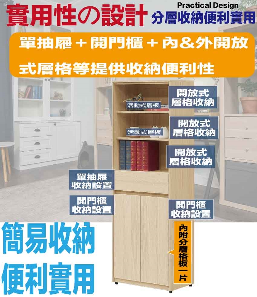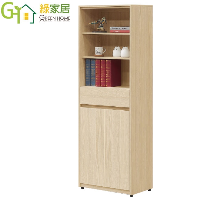 【綠家居】米科2尺二門單抽半開放書櫃/收納櫃