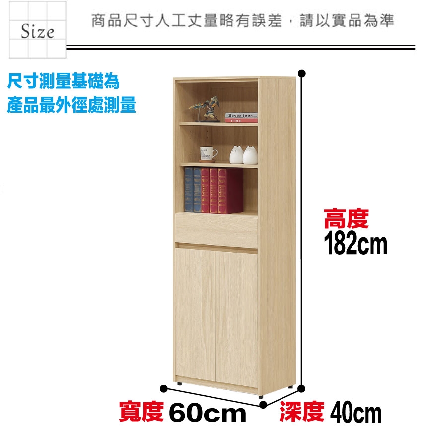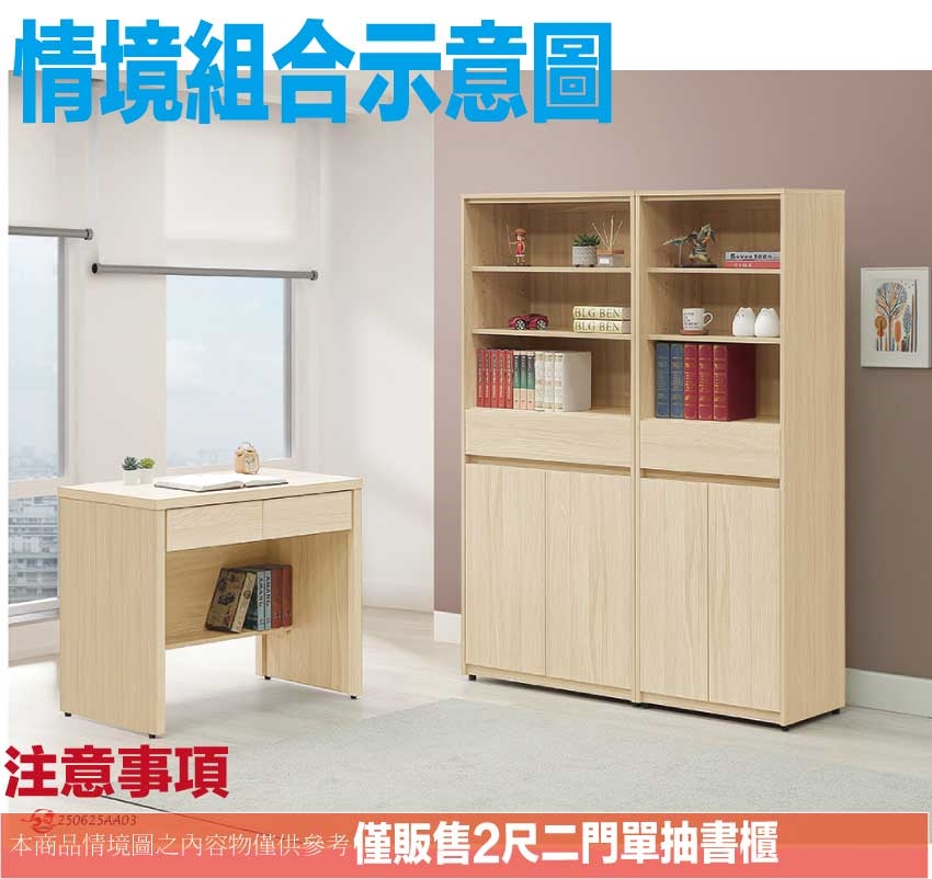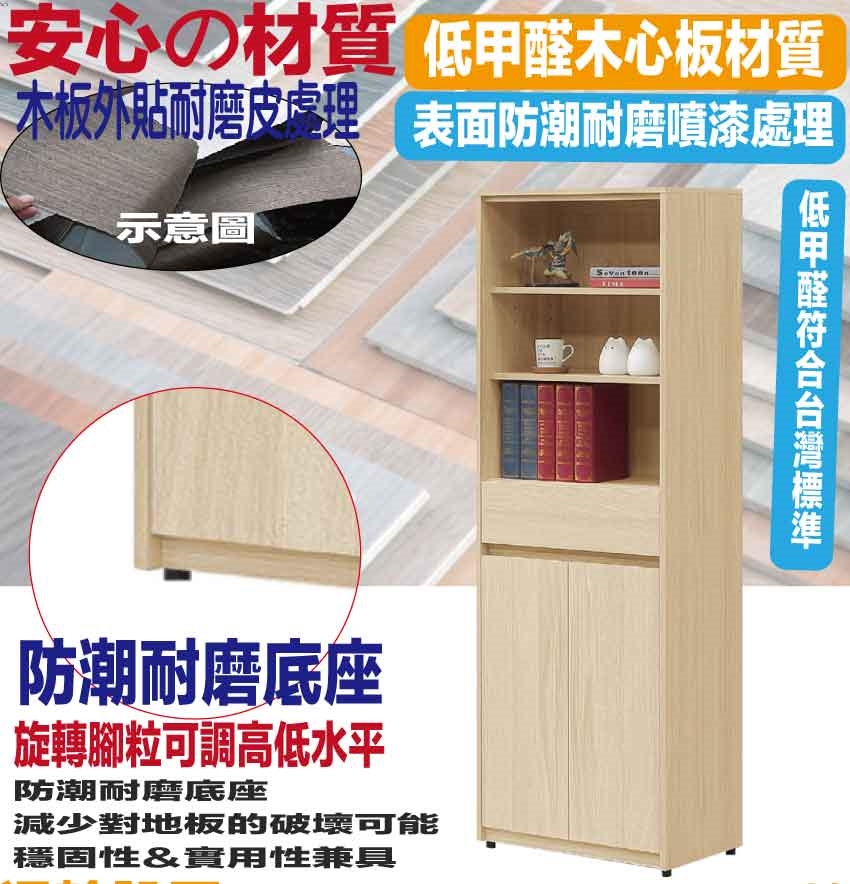 - 產品名稱:【綠家居】米科2尺二門單抽半開放書櫃/收納櫃