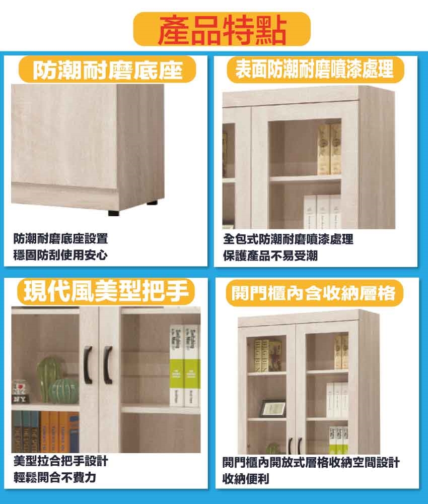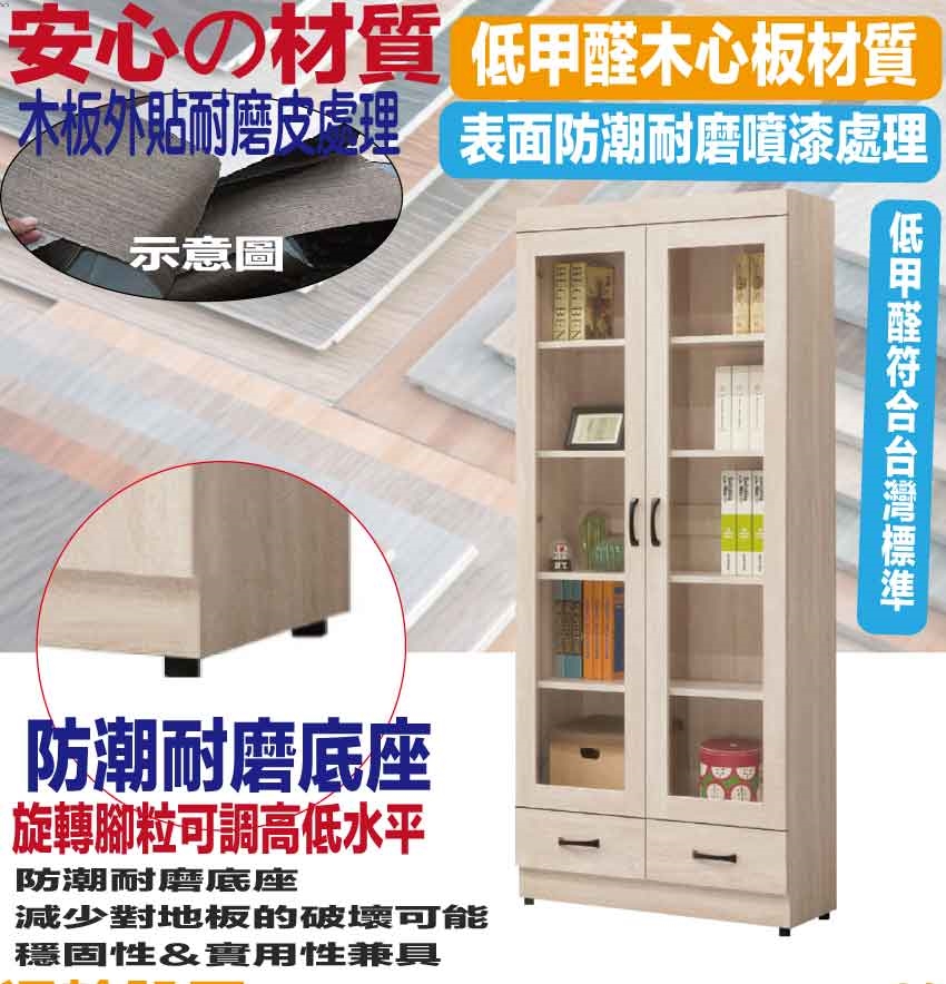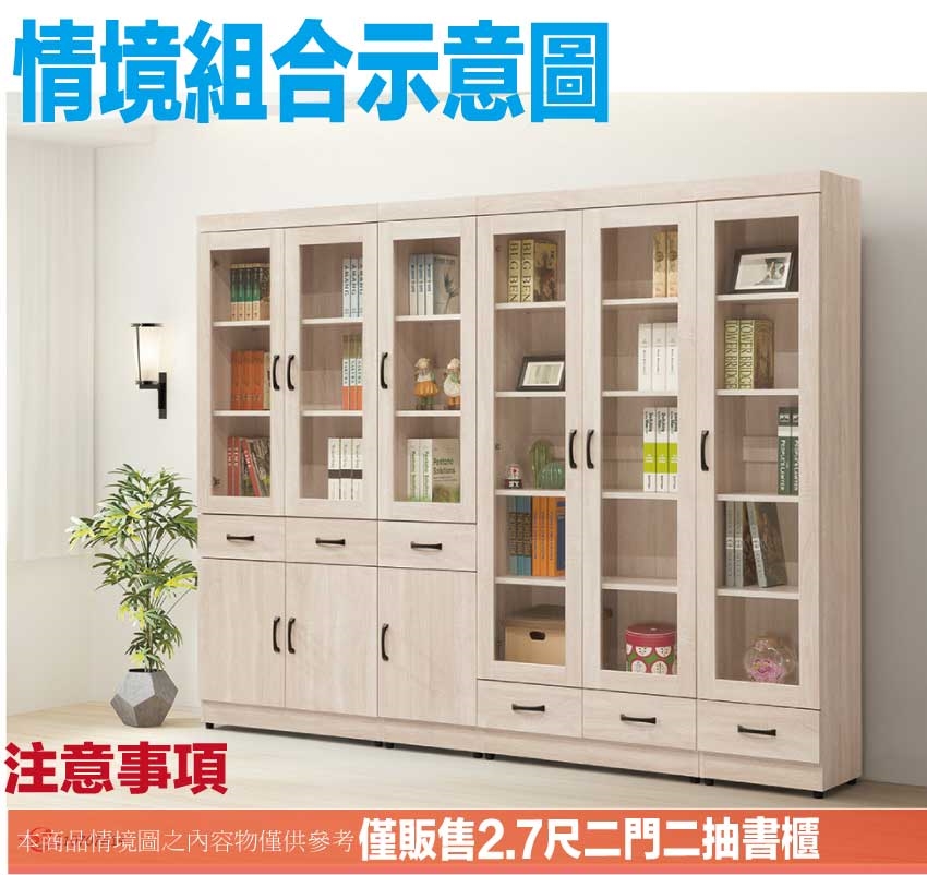 - 產品名稱:【綠家居】麥科2.7尺二門二抽書櫃/收納櫃