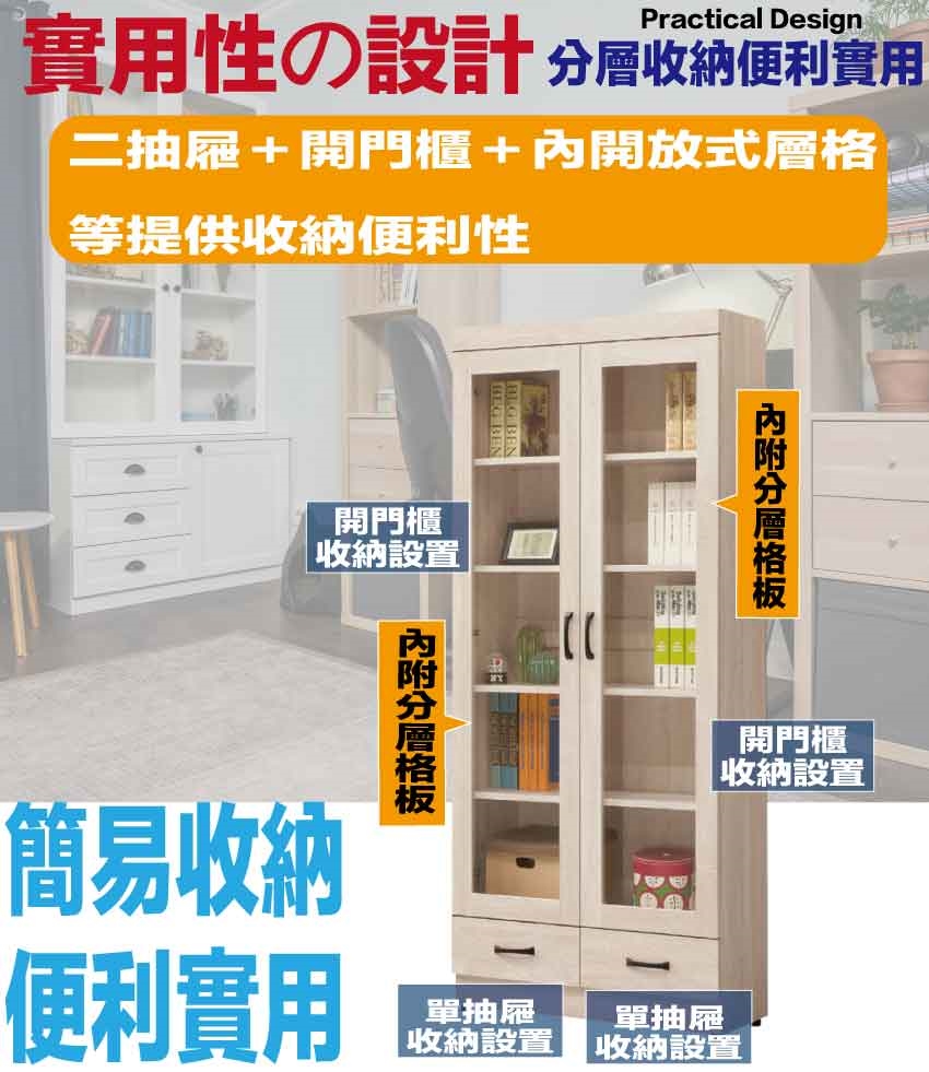 【綠家居】麥科2.7尺二門二抽書櫃/收納櫃