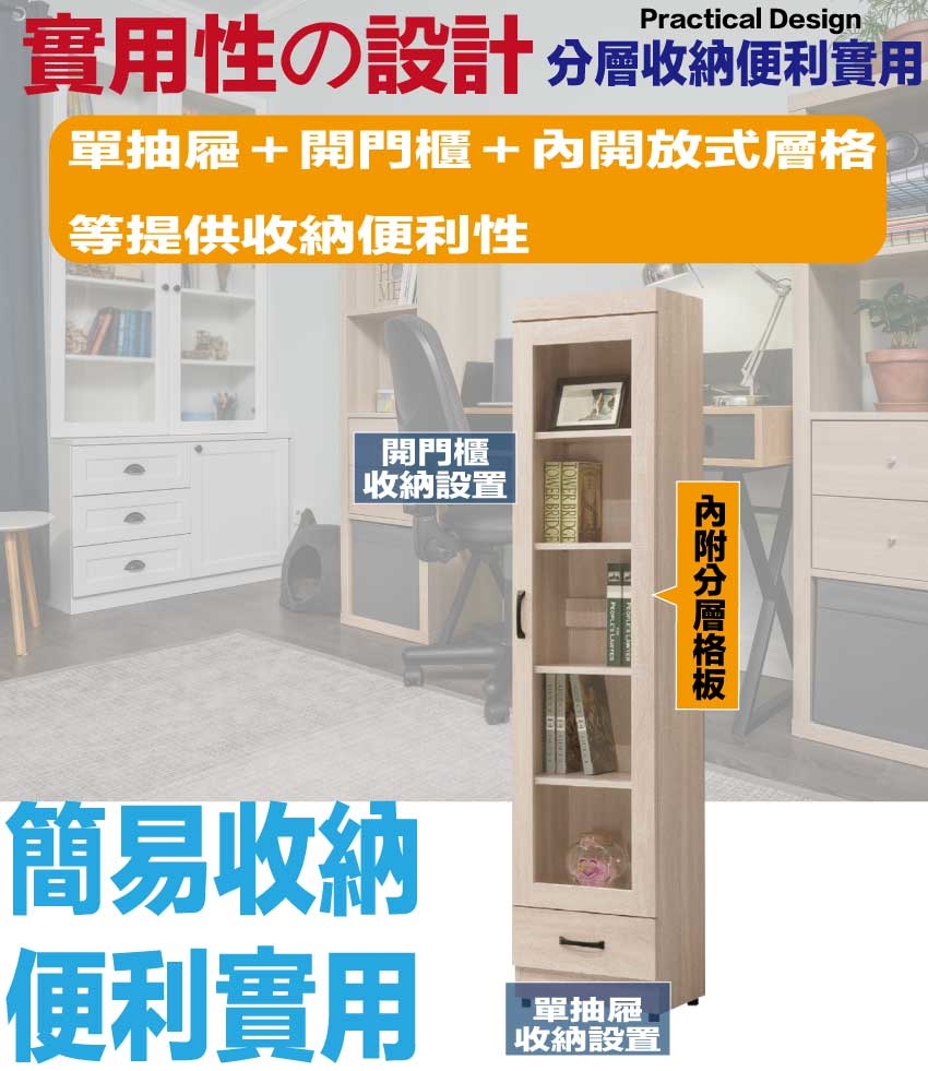 - 產品名稱:【綠家居】麥科1.3尺單門單抽書櫃/收納櫃