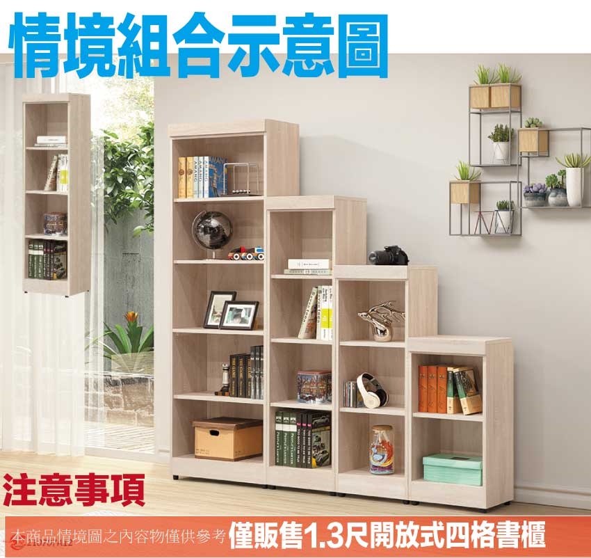 - 產品名稱:【綠家居】麥科1.3尺開放式四格書櫃/收納櫃
