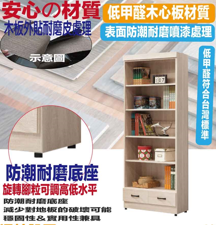 ★偏遠地區需額外加收運費,下標請先問與答詢問★ ★下訂前注意 由於商品流動較快,下訂前請先詢問是否有貨在下訂喔~★ 【綠家居】麥科2.7尺開放式二抽書櫃/收納櫃 淺橡木紋色系+現代簡約風格+安心材質製造,使用放心+搭配居家更便利,整體採用防蛀木心板+防潮耐磨底座(可調高低水平)等安心材質製造搭配外層採用防潮耐磨噴漆處理 ,採用二抽屜+開放多層格等收納空間設計,全由專人配送到家,專業安心服務,替你省下更多時間!