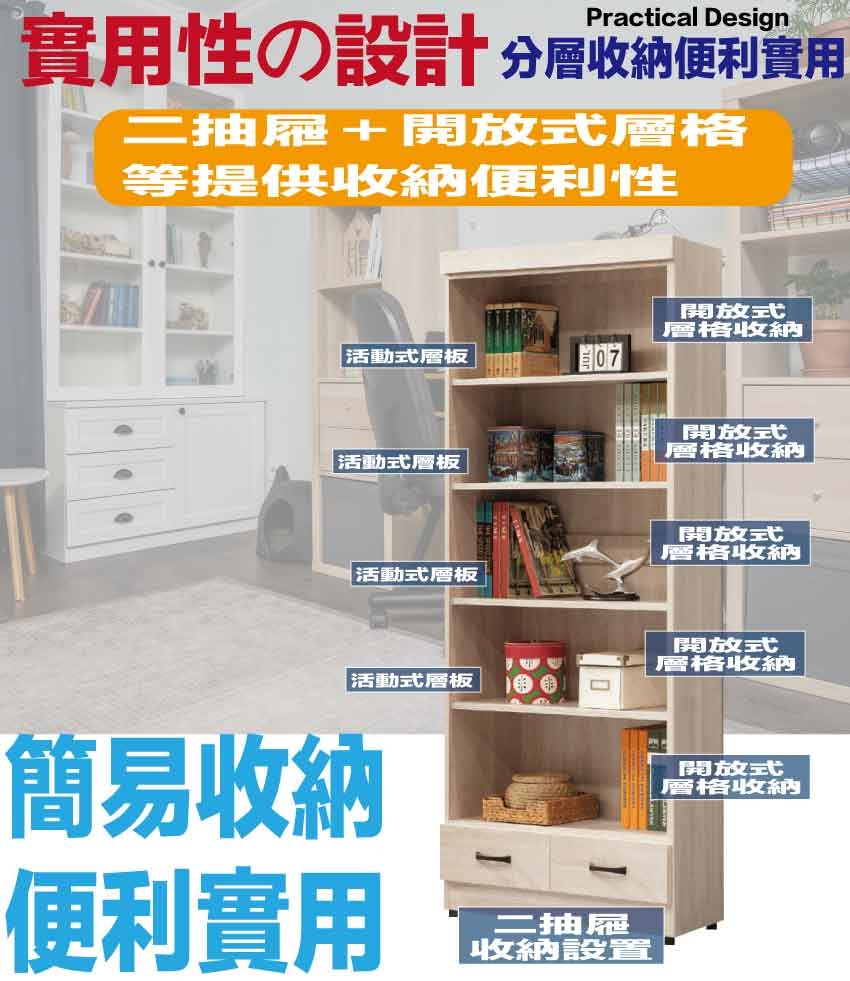【綠家居】麥科2.7尺開放式二抽書櫃/收納櫃