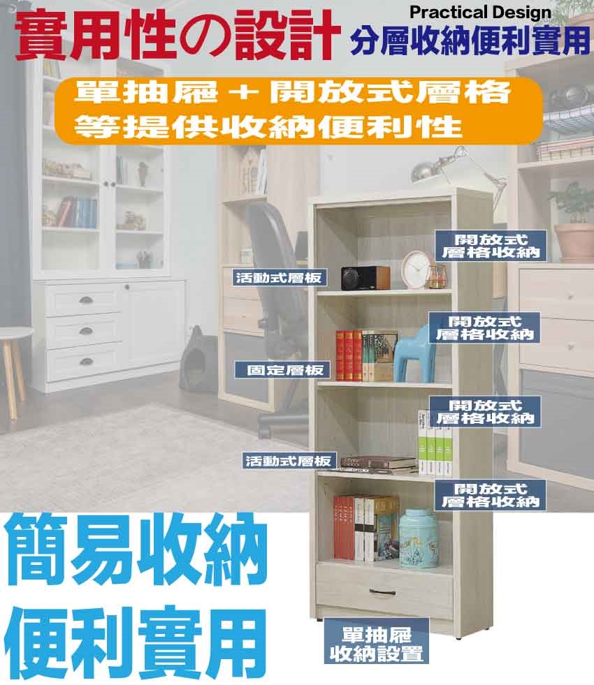 - 產品名稱:【綠家居】麥卡2尺開放式單抽書櫃/收納櫃