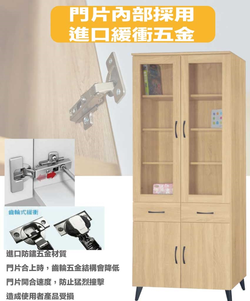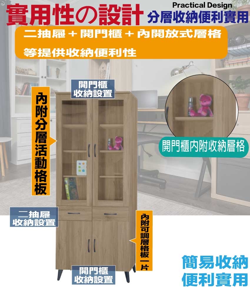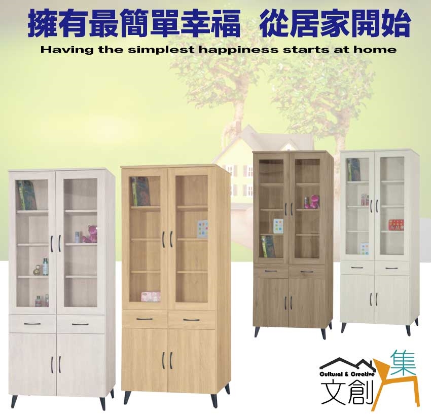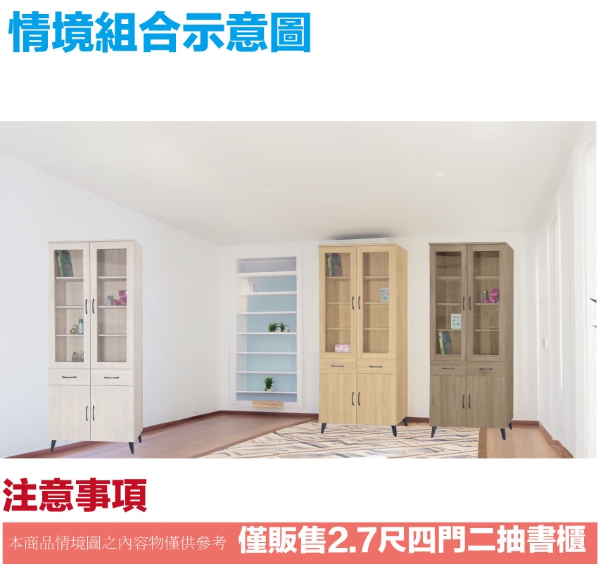 【綠家居】田野2.7尺四門二抽書櫃(四色可選)