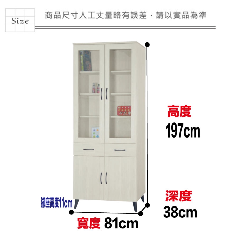 產品名稱:【綠家居】田野2.7尺四門二抽書櫃(四色可選) - 尺寸:(寬)81x(深)38x(高)197/公分