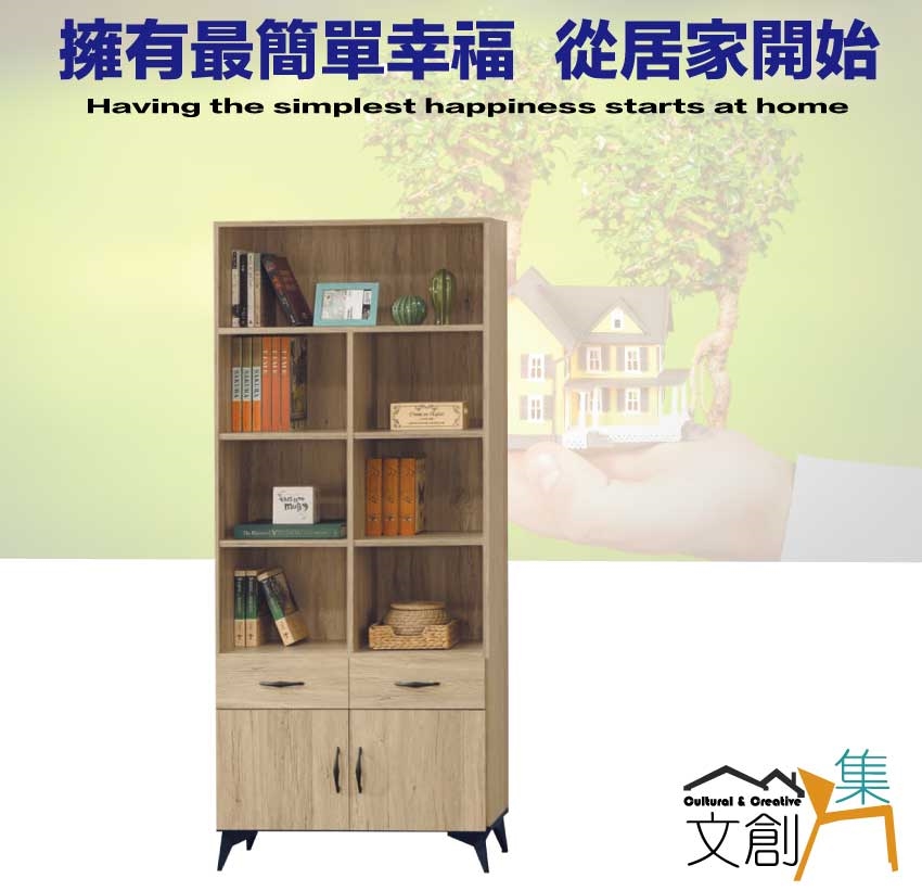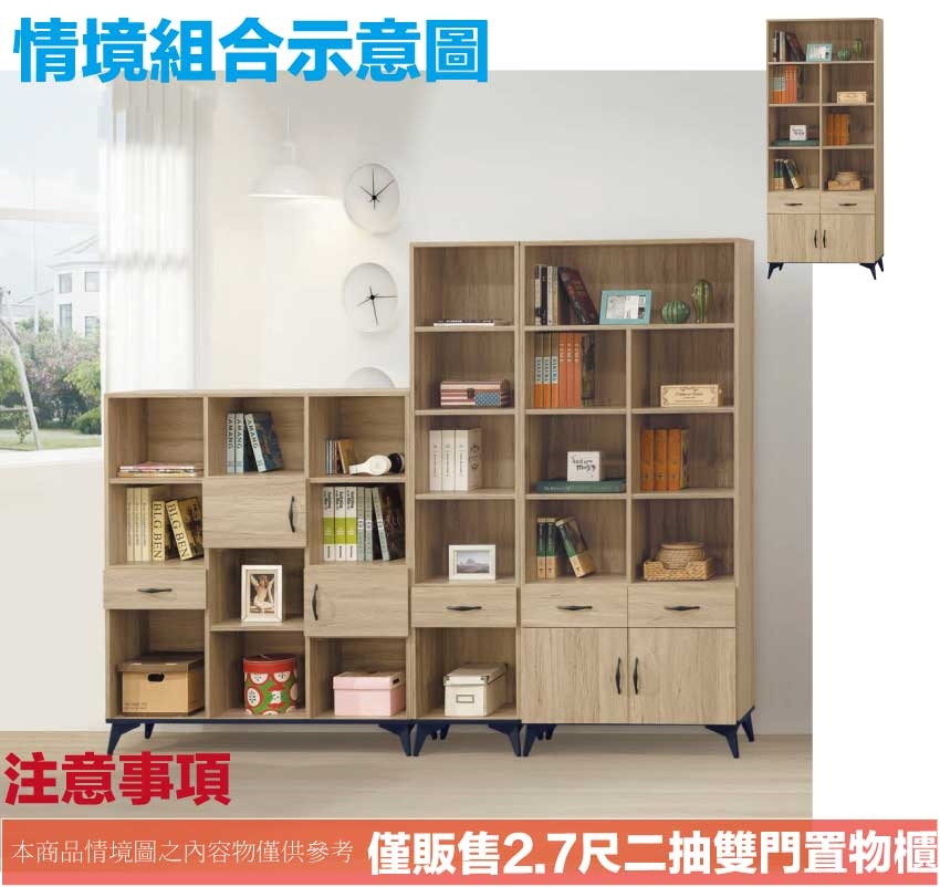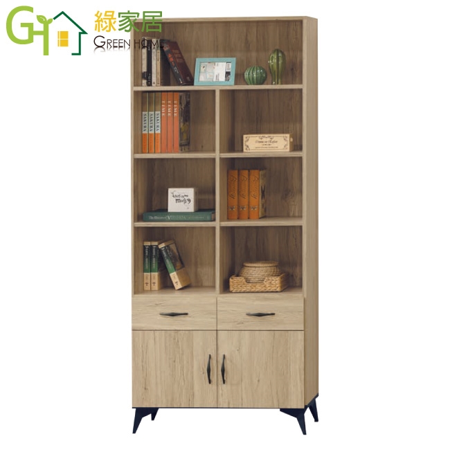 【綠家居】伊爾2.7尺二門二抽書櫃