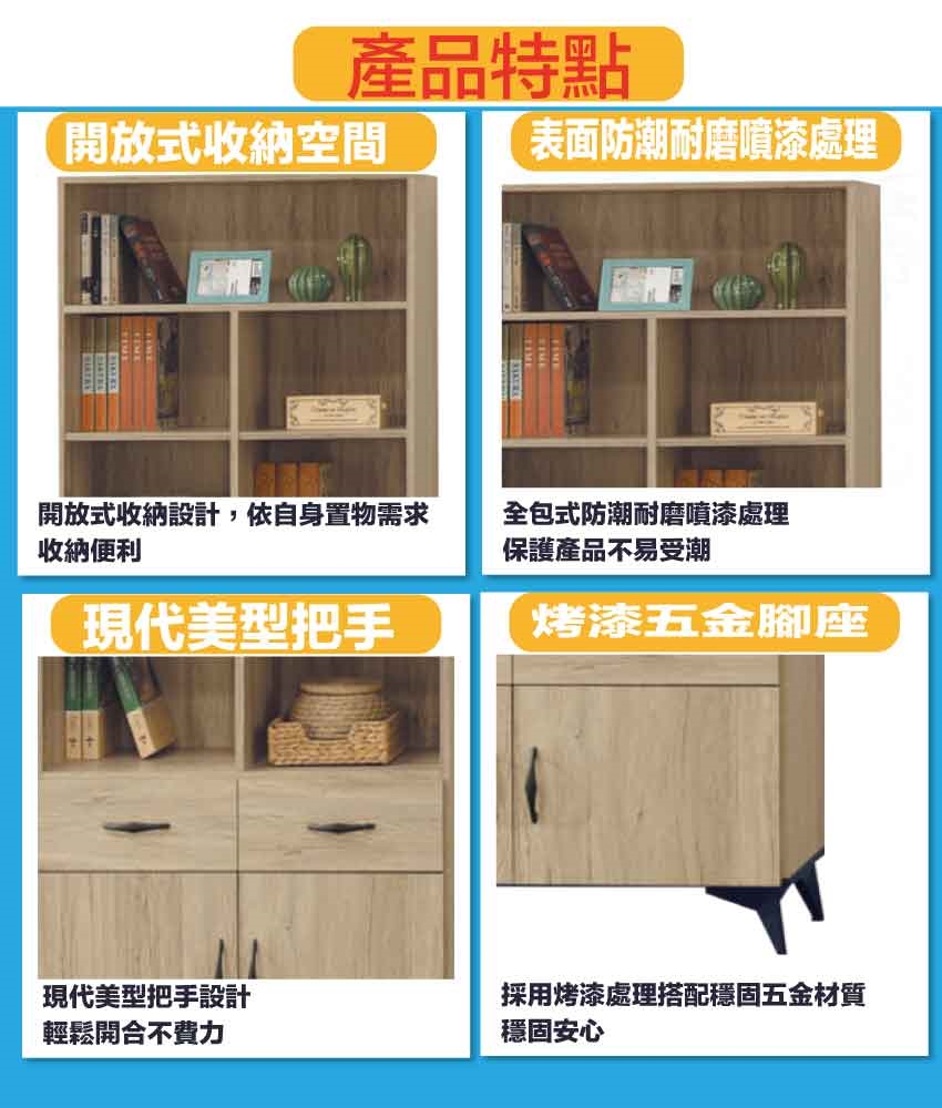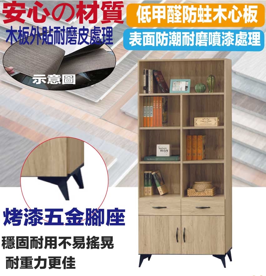 【綠家居】伊爾2.7尺二門二抽書櫃 橡木紋色系+安心材質製造,使用放心+搭配居家更便利,採用防蛀木心板+烤漆五金腳座等安心材質製造 ,外層採用防潮耐磨噴漆處理搭配採用開門櫃+二抽屜+開放層格等收納空間設計,全由專人配送到家,專業安心服務,替你省下更多時間!