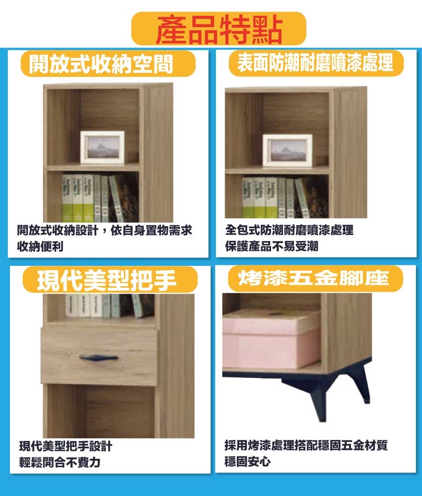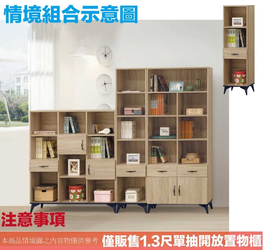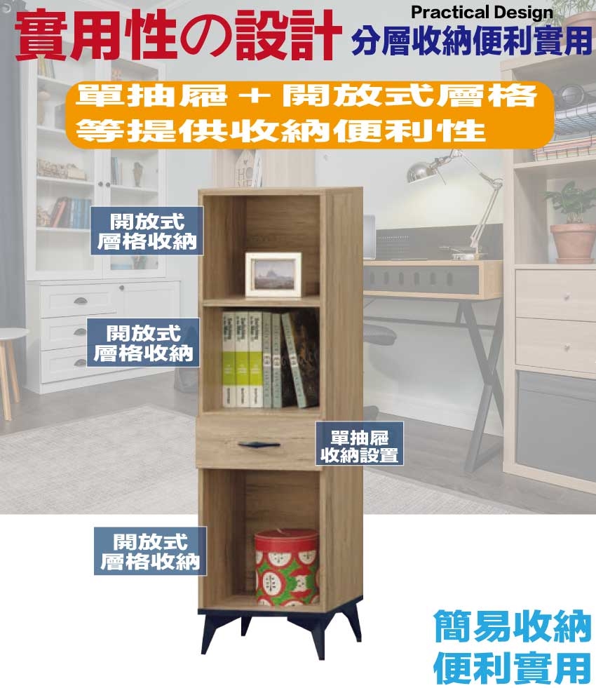 【綠家居】伊爾1.3尺單抽開放書櫃