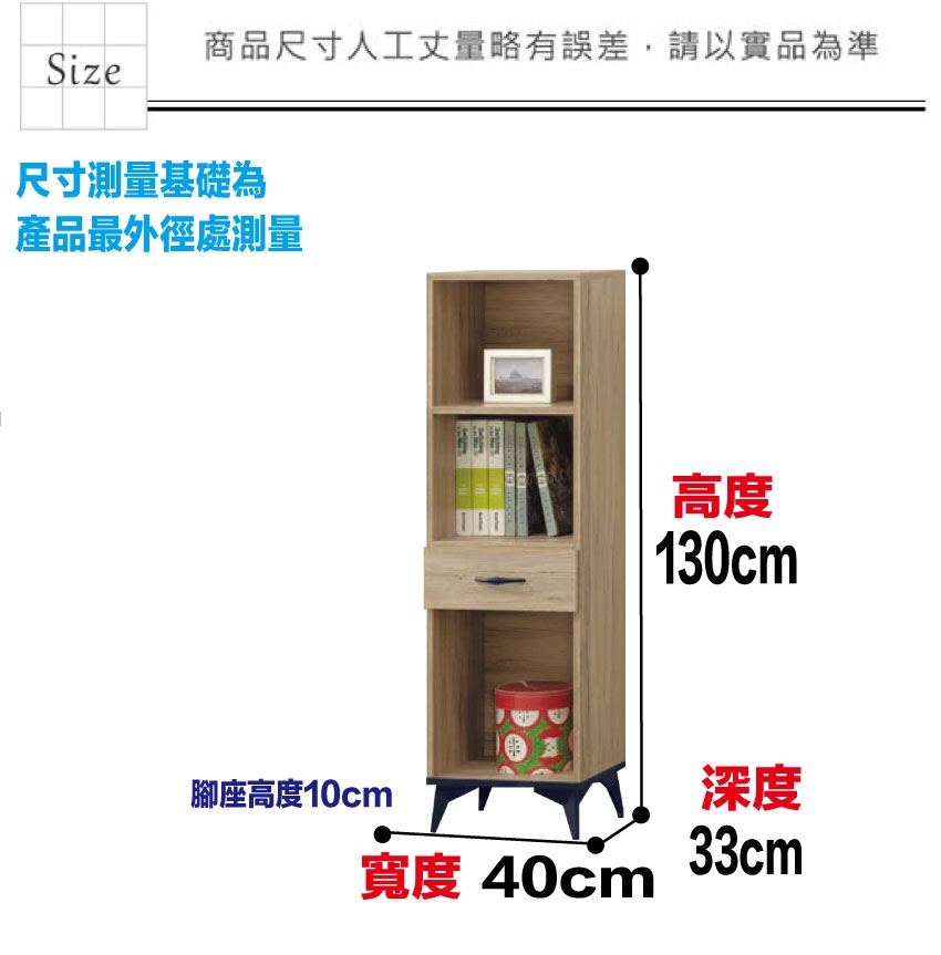 產品名稱:【綠家居】伊爾1.3尺單抽開放書櫃 - 尺寸:(寬)40x(深)33x(高)130/公分
