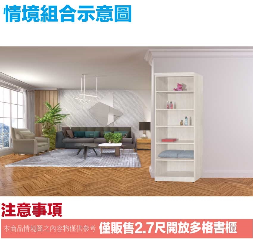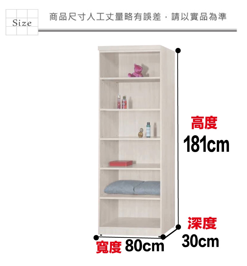 產品名稱:【綠家居】赫爾2.7尺開放多格書櫃 - 尺寸:(寬)80x(深)30x(高)181/公分