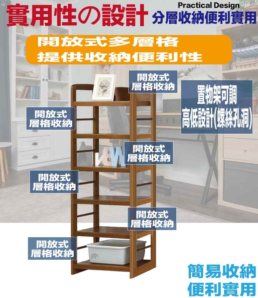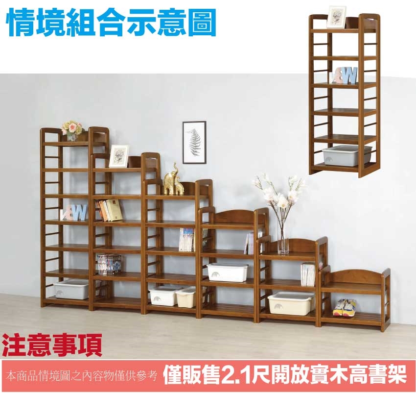 【綠家居】卡西爾2.1尺實木開放六格書櫃