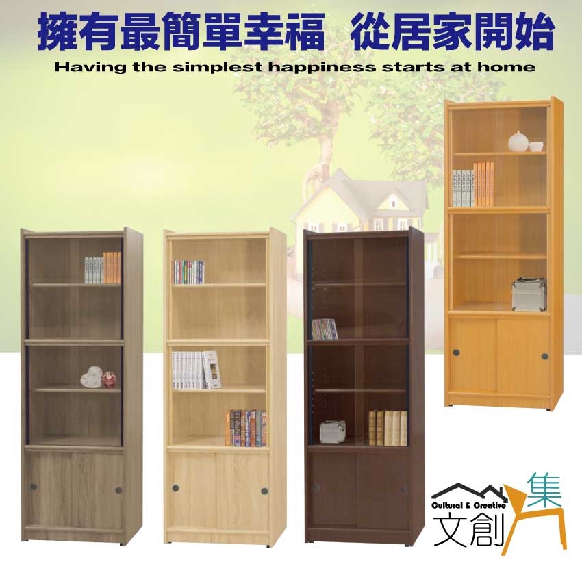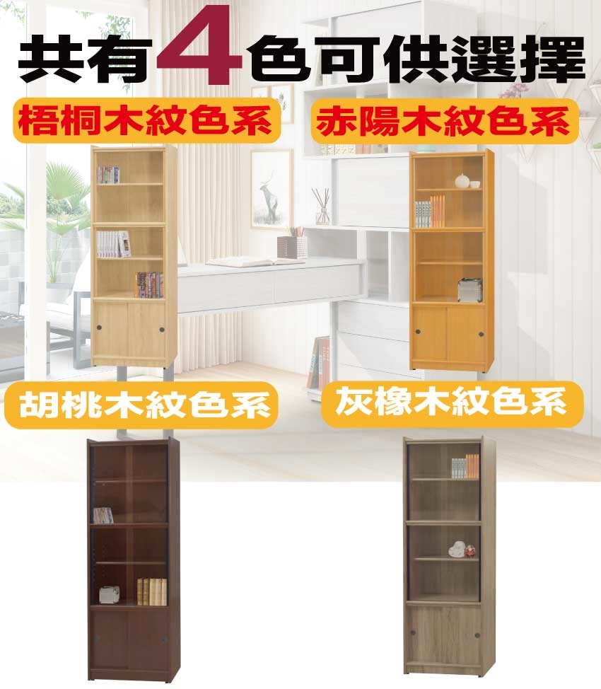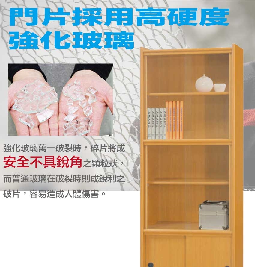 【綠家居】康永2尺玻璃雙推門書櫃(四色可選)