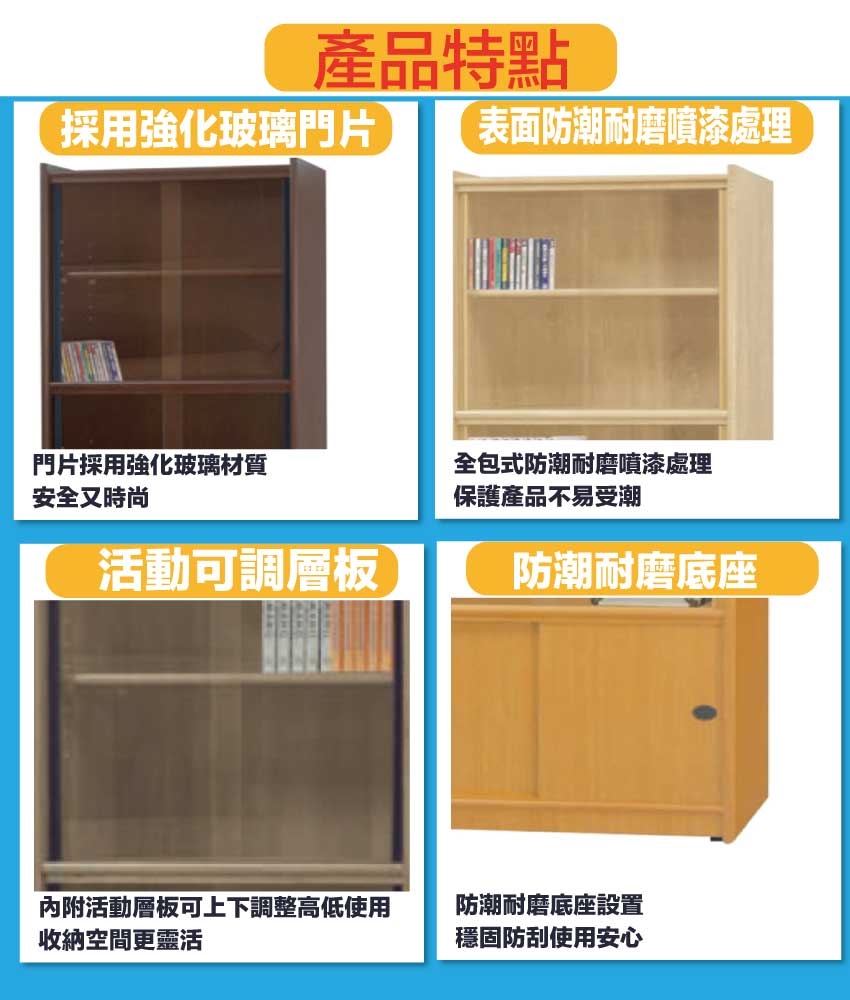 【綠家居】康永2尺玻璃雙推門書櫃(四色可選) 四色可選+安心材質製造,使用放心+搭配居家更便利,採用防蛀木心板+防潮耐磨底座+強化玻璃門片等安心材質製造 ,外層採用防潮耐磨噴漆處理搭配採用推門櫃+內開放層格等收納空間設計,全由專人配送到家,專業安心服務,替你省下更多時間!