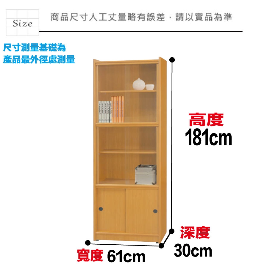 產品名稱:【綠家居】康永2尺玻璃雙推門書櫃(四色可選) - 尺寸:(寬)61x(深)30x(高)181/公分