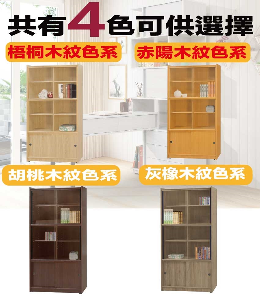 【綠家居】康永3尺玻璃雙推門書櫃(四色可選)