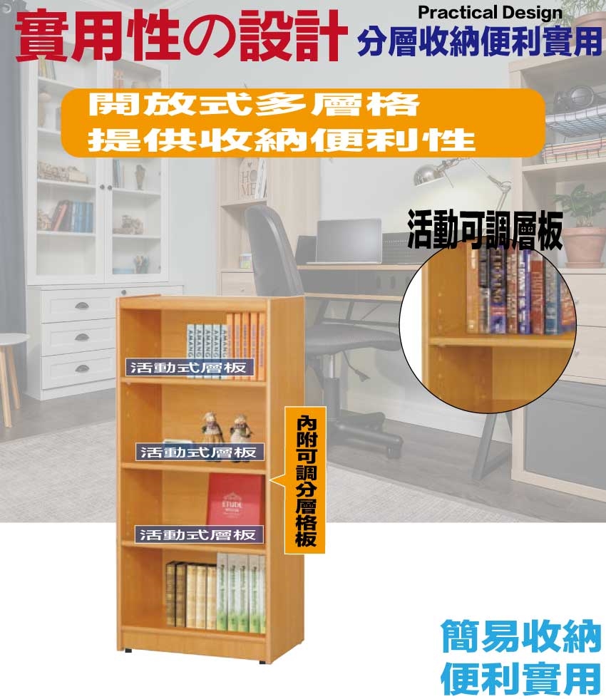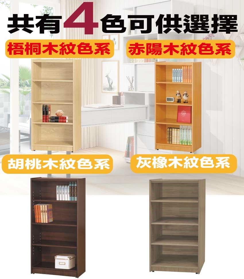 【綠家居】康永2尺開放四格書櫃(四色可選)
