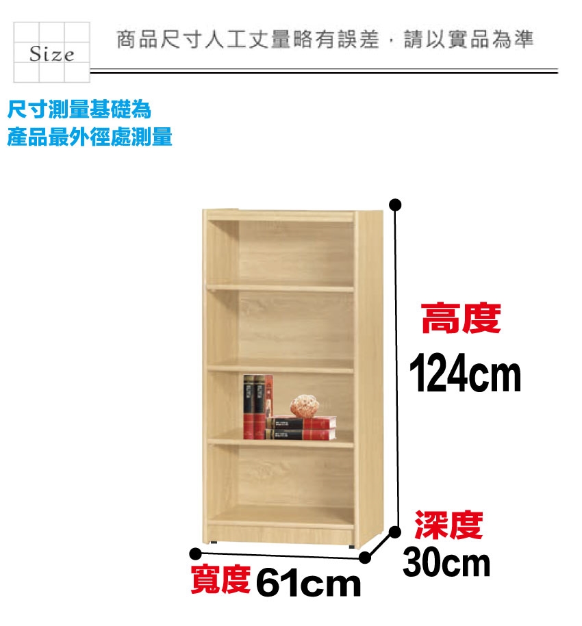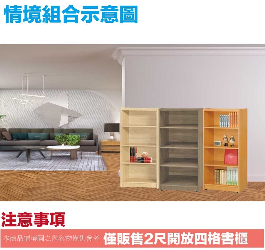 產品名稱:【綠家居】康永2尺開放四格書櫃(四色可選) - 尺寸:(寬)61x(深)30x(高)124/公分