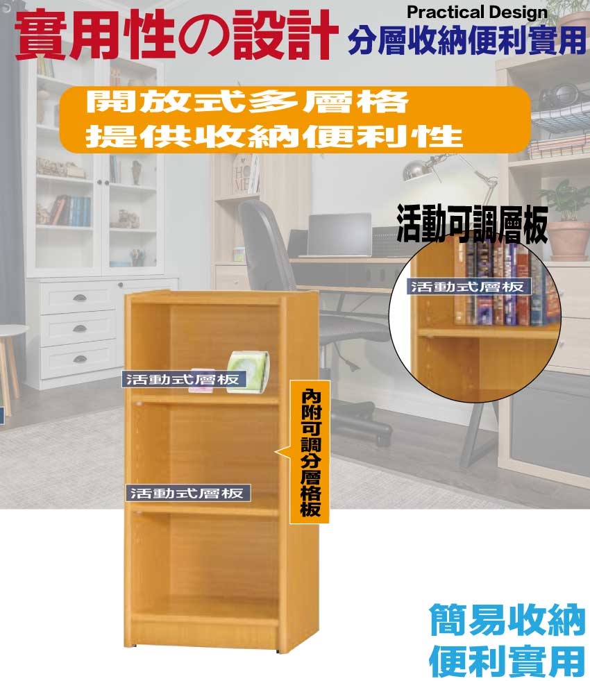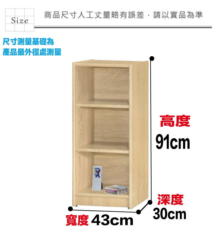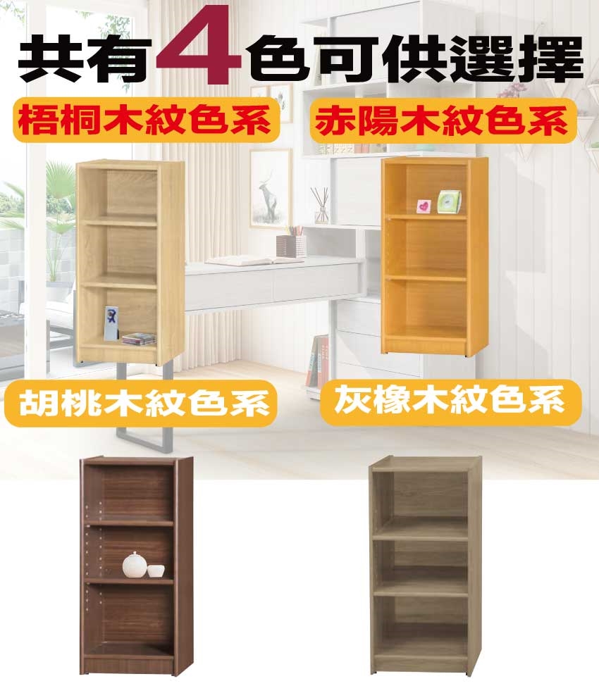 產品名稱:【綠家居】康永1.4尺開放三格書櫃(四色可選) - 尺寸:(寬)43x(深)30x(高)91/公分
