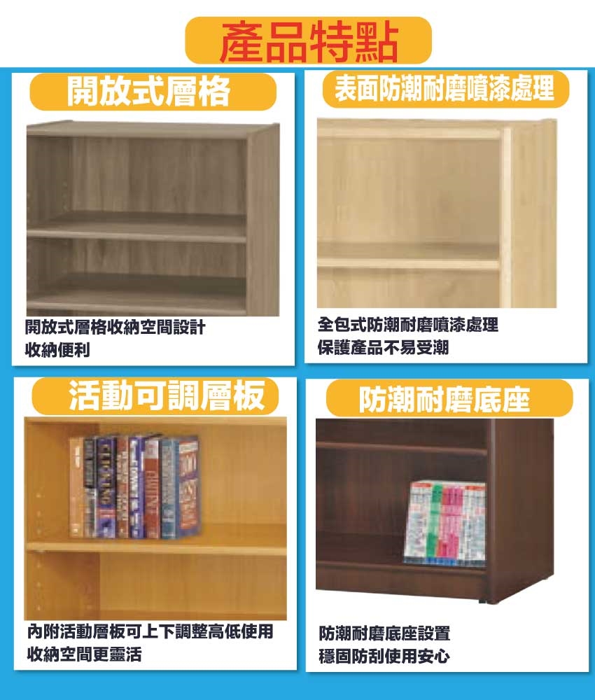 【綠家居】康永1.4尺開放三格書櫃(四色可選) 四色可選+安心材質製造,使用放心+搭配居家更便利,採用防蛀木心板+防潮耐磨底座等安心材質製造 ,外層採用防潮耐磨噴漆處理搭配採用開放多層格收納空間設計,全由專人配送到家,專業安心服務,替你省下更多時間!