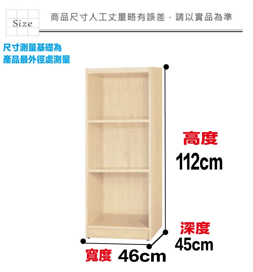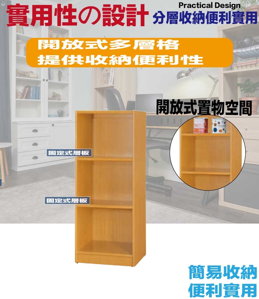 產品名稱:【綠家居】康永1.5尺開放三格書櫃(四色可選) - 尺寸:(寬)46x(深)45x(高)112/公分