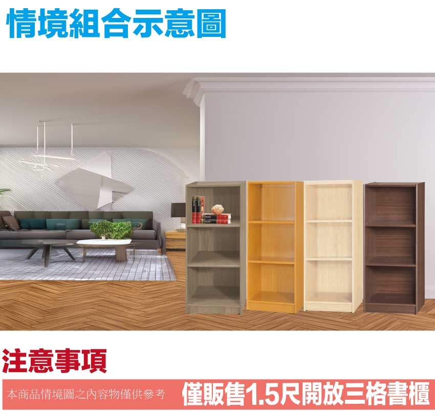 【綠家居】康永1.5尺開放三格書櫃(四色可選)