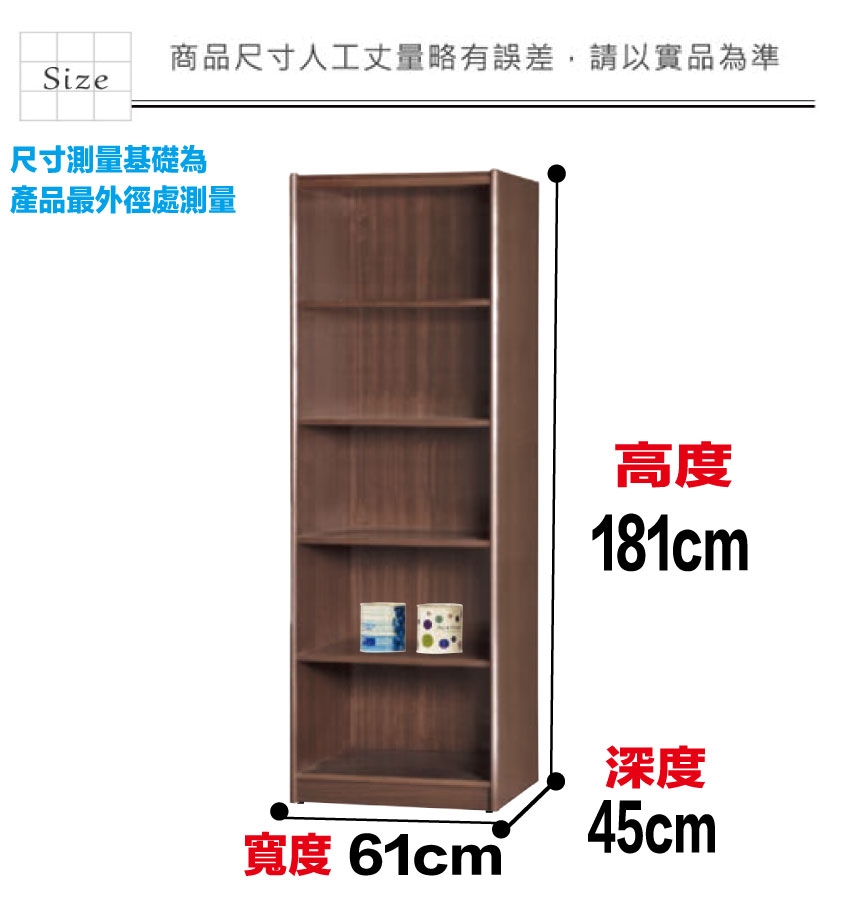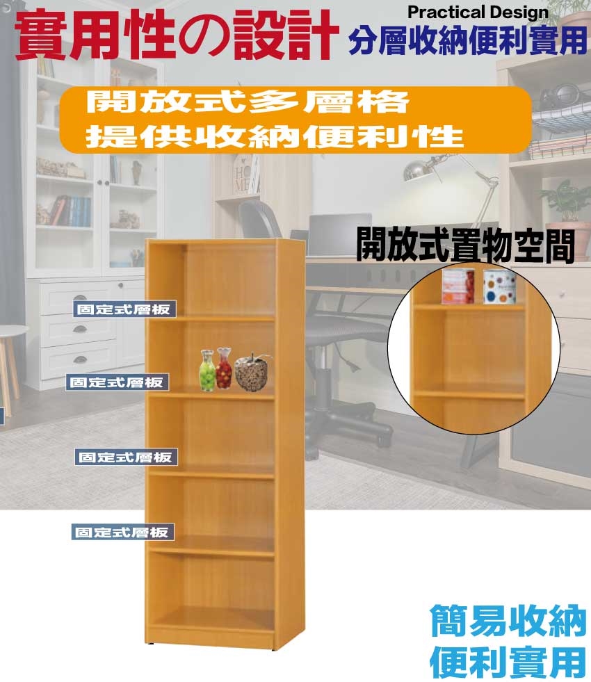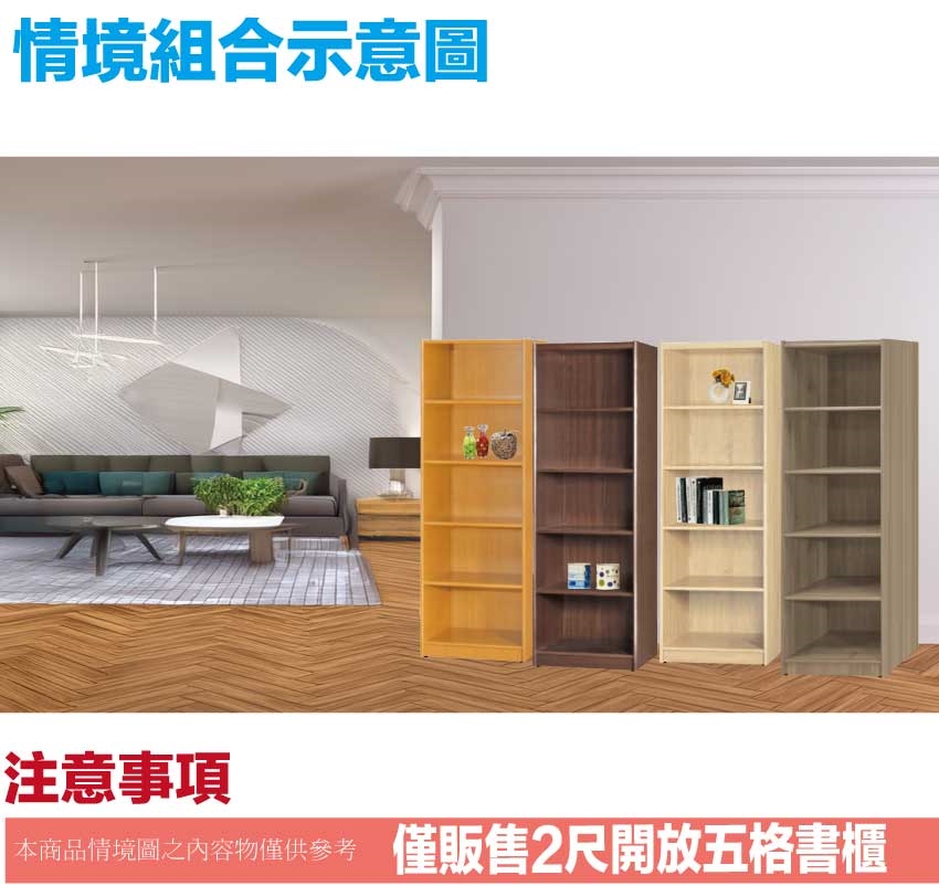 產品名稱:【綠家居】康永2尺開放五格書櫃(四色可選) - 尺寸:(寬)61x(深)45x(高)181/公分