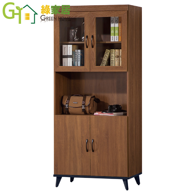 【綠家居】路斯 時尚2.7尺木紋四門書櫃/收納櫃