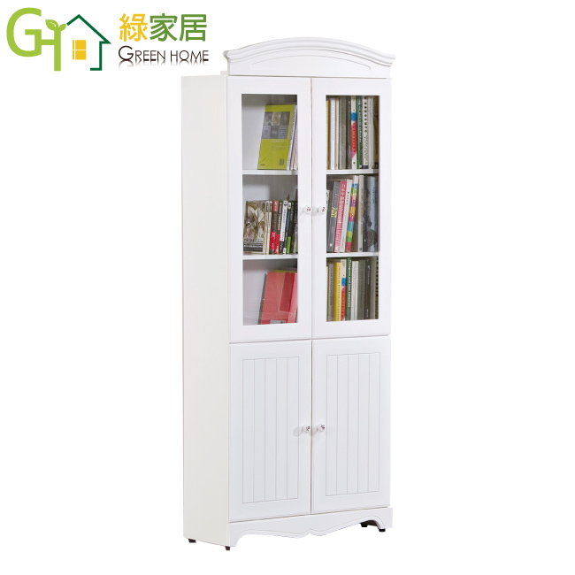 【綠家居】法斯威 法式白2.7尺四門書櫃/收納櫃