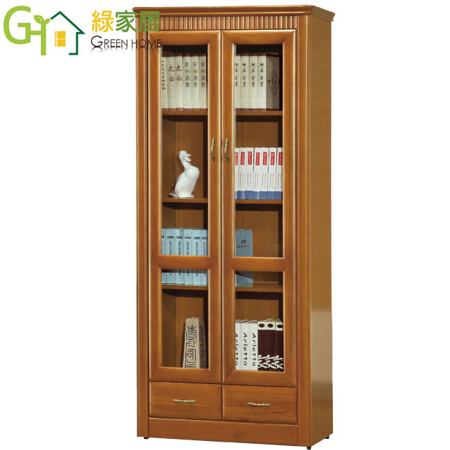 【綠家居】古斯納 典雅2.7尺實木二門二抽書櫃/收納櫃