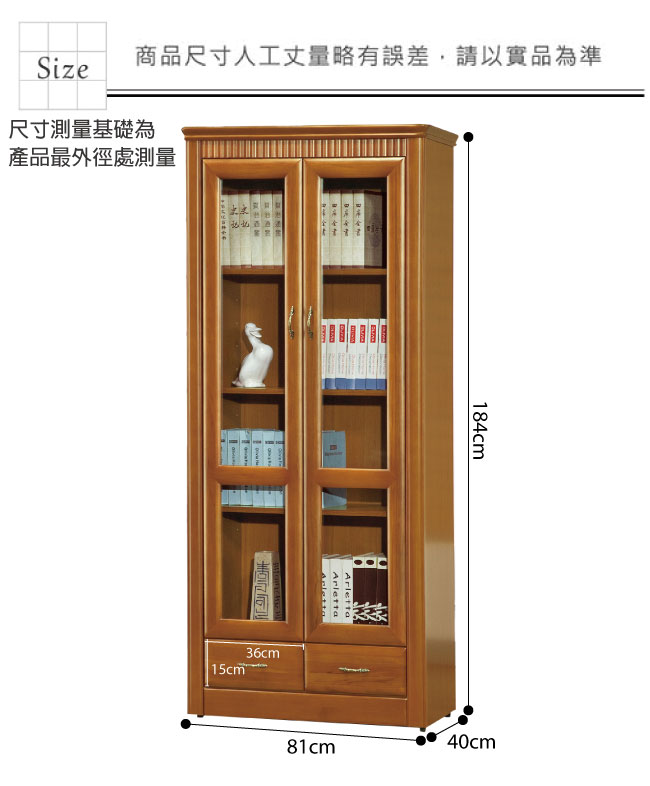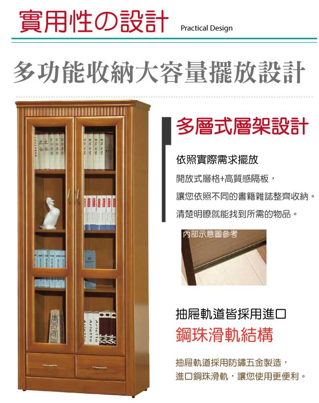 ◆產品名稱:【綠家居】古斯納 典雅2.7尺實木二門二抽書櫃/收納櫃