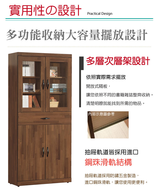 【綠家居】藍歐 時尚2.6尺四門單抽書櫃/收納櫃 亮麗的木紋色澤與細緻的紋路線條,以及現代風格設計。採用防蛀木心板+高硬度強化玻璃等材質設計製造,不易刮傷質地,防潮防蟲蛀,加上優麗坦耐磨三層全包式塗漆塗裝,讓表面更加細緻光滑,保存色澤持久,書櫃為開放式層格+四門櫃+單抽屜+鋼珠滑軌+防夾手緩衝門片五金結構設計,使用上安全無慮好放心!想要一款優質又實用的傢俱嗎?【綠家居】藍歐 時尚2.6尺四門單抽書櫃/收納櫃 讓您體驗悠然自得的居家風情!