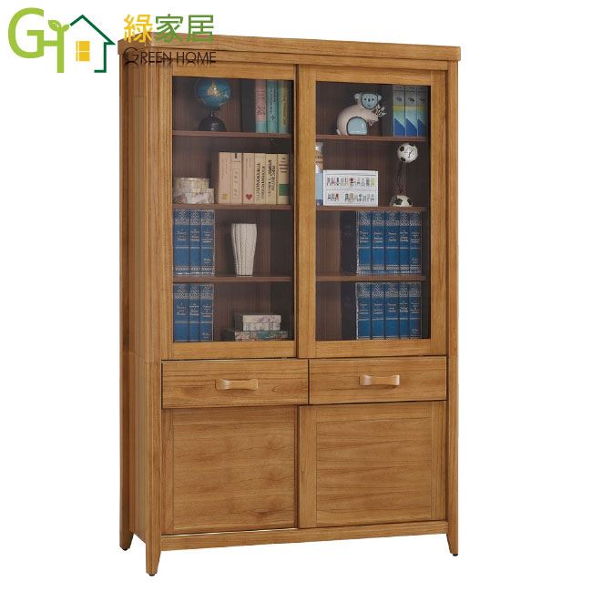 - ◆產品名稱:【綠家居】達怡實木4.1尺四推門中二抽書櫃/收納櫃
