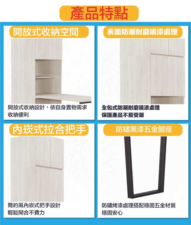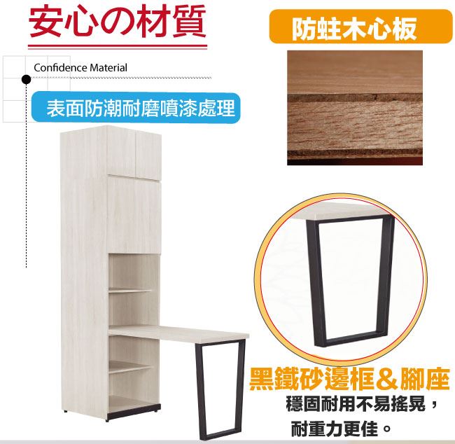 材質 | ◆產品名稱:【綠家居】艾絲莉4尺四門半開放加高書桌&書櫃組合 尺寸:(寬)120(深)60(高)236公分 ◆材質: 材質:防蛀木心板+防潮耐磨腳座+防夾手緩衝門片五金+防鏽黑漆五金邊框 噴漆:防潮耐磨噴漆處理