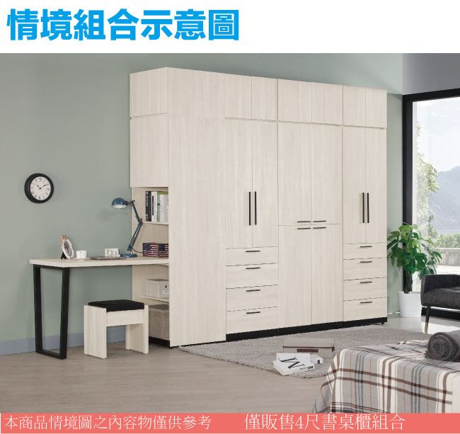 【綠家居】艾絲莉4尺四門半開放加高書桌&書櫃組合