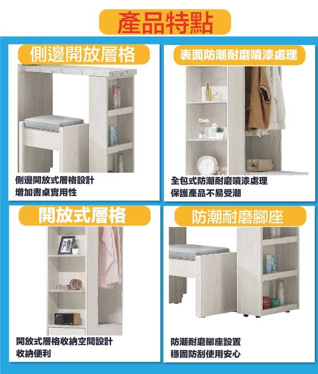 材質 | ◆產品名稱:【綠家居】菲可達4尺三抽加高書桌櫃組合(含書桌椅) 尺寸:(寬)120x(深)60(高)236/公分 ◆材質: 材質:防蛀木心板+五金滑軌結構+防潮耐磨底座+仿大理石紋美耐皿面板 噴漆:防潮耐磨噴漆處理 |