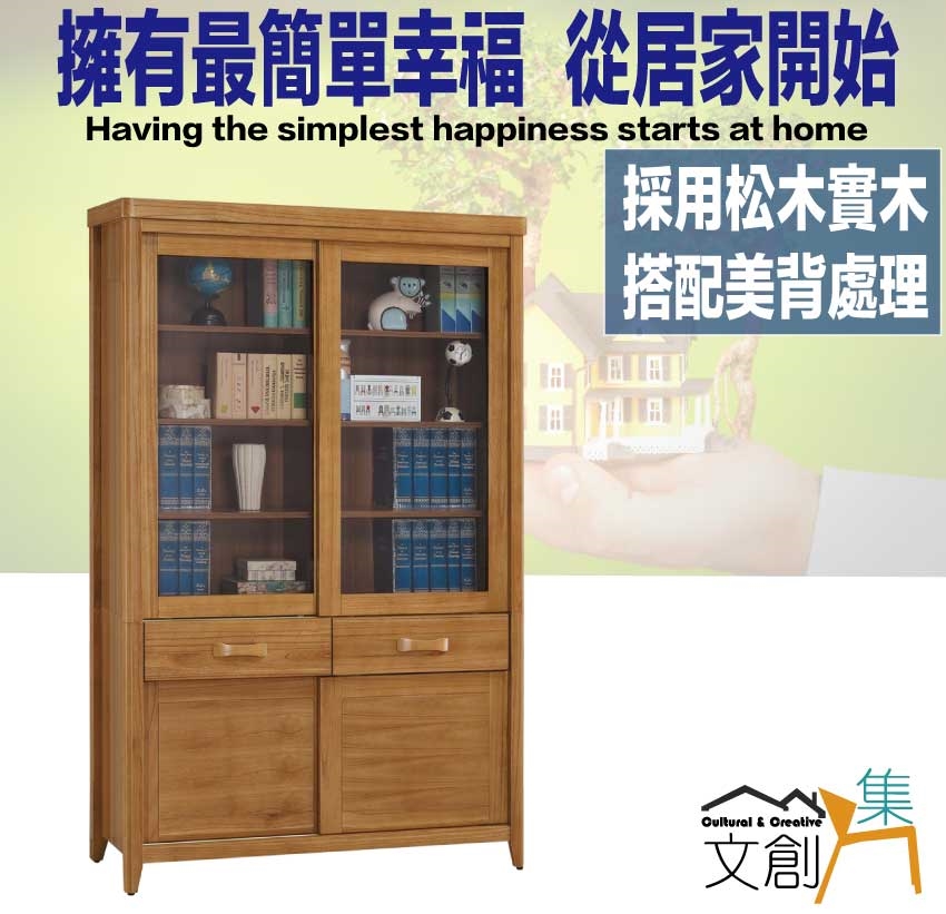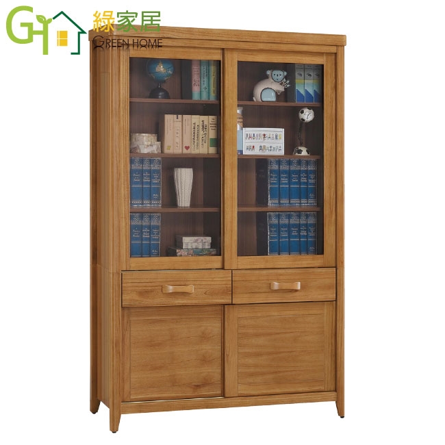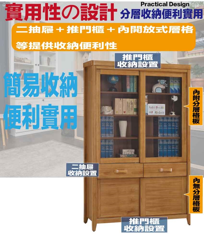 - 產品名稱:【綠家居】巴格4.1尺推門二抽實木書櫃