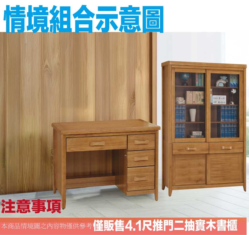 【綠家居】巴格4.1尺推門二抽實木書櫃