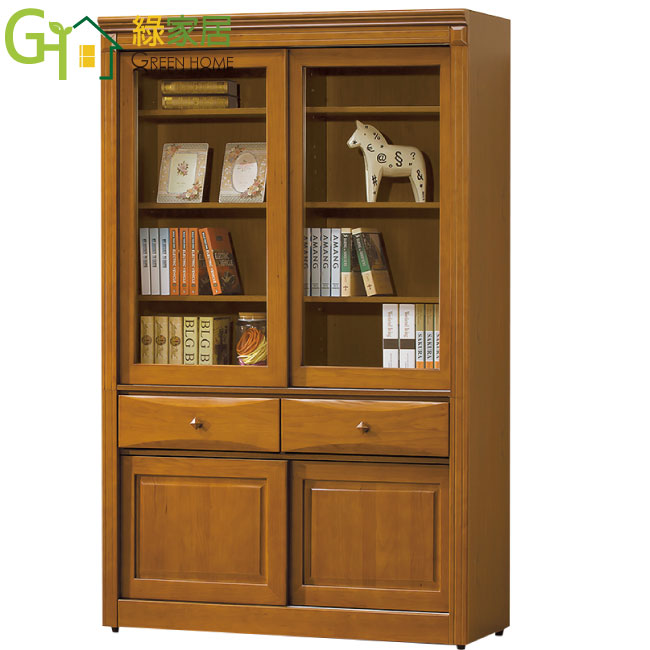 【綠家居】羅廷 時尚4尺實木推門書櫃/收納櫃 精緻典雅造型設計,整體材質採用樟木實木+防蛀木心板+高硬度強化玻璃+優利坦三層抗磨全包式塗漆處理+鋼珠滑軌結構+典雅造型把手等設計 ,防止受潮,增加支撐力,堅固不會塌陷,採用二抽屜+開放式層格+四門櫃等收納空間設計,高雅的紋路,營造隨性時尚感,清潔容易不麻煩。全由專人配送到家,專業安心服務,替你省下更多時間!