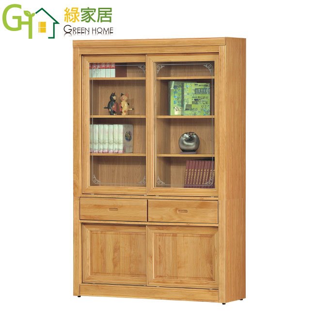 ◆產品名稱:【綠家居】歐巴 時尚4.1尺實木四門二抽書櫃/收納櫃