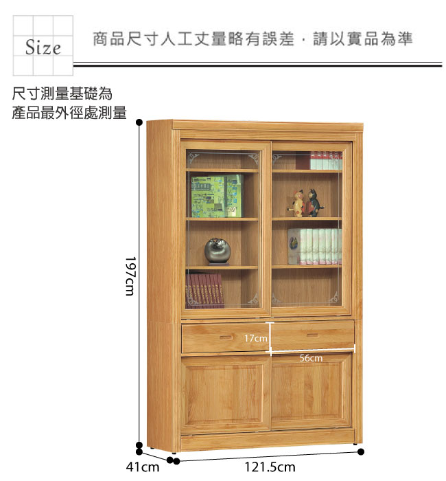 書櫃尺寸:(寬)121.5x(深)41x(高)197/公分