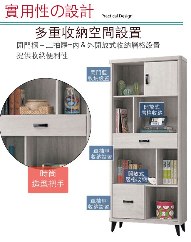 - 開放式收納+單抽屜+開門櫃