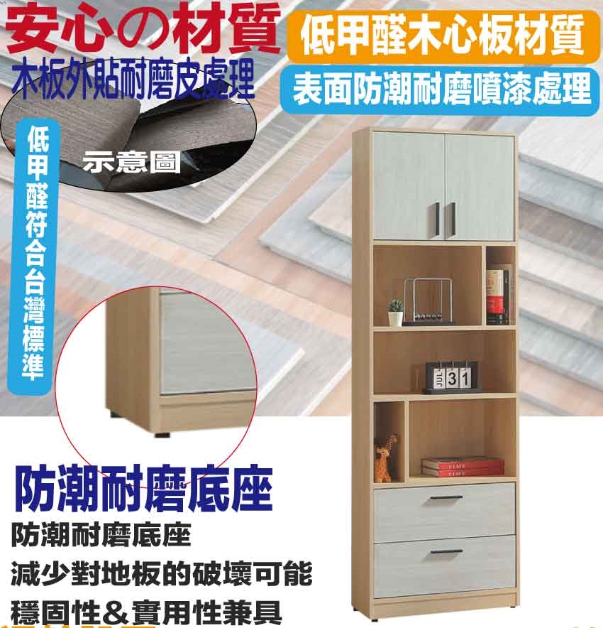 ★偏遠地區需額外加收運費,下標請先問與答詢問★ ★下訂前注意 由於商品流動較快,下訂前請先詢問是否有貨在下訂喔~★ 【綠家居】克莉2尺二門二抽中空書櫃 木紋雙色系+現代簡約風格+安心材質製造,使用放心+搭配居家更便利,整體採用防蛀木心板+防潮耐磨底座(可調高低水平)等安心材質製造搭配外層採用防潮耐磨噴漆處理 ,採用開門櫃+二抽屜+內&外開放層格等收納空間設計,全由專人配送到家,專業安心服務,替你省下更多時間!
