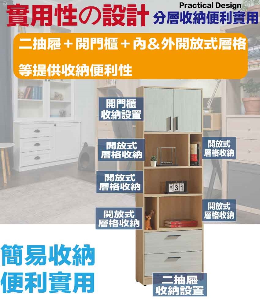 - ◆產品名稱:【綠家居】克莉2尺二門二抽中空書櫃