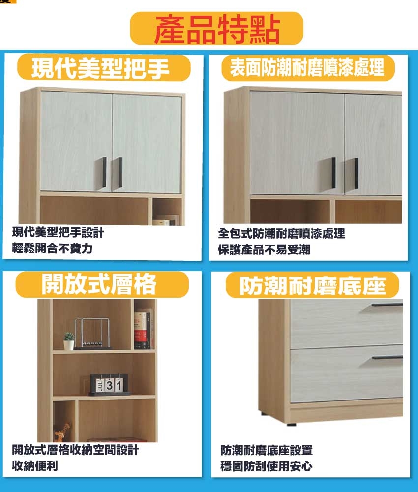 木紋雙色系+現代簡約風格+安心材質製造,使用放心+搭配居家更便利